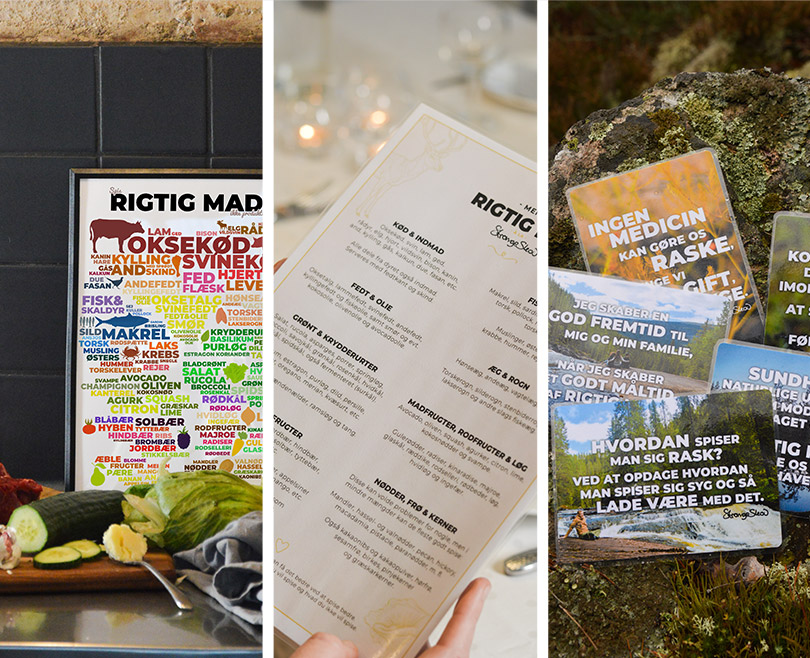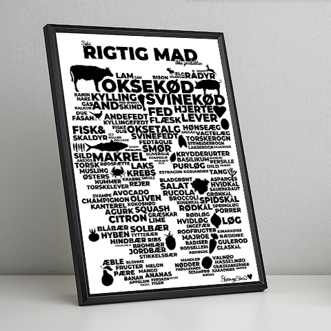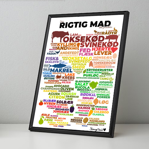 Få en samlet pakke med kostplakaten i ramme + ‘rigtig mad’-listen + 5 citat-kort med magnet, og spar penge på fragten.